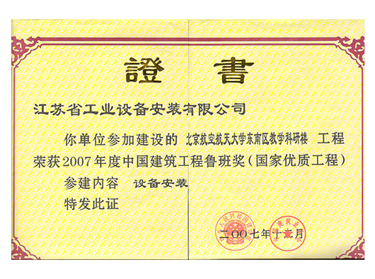 北京航空航天大學(xué)東南區(qū)教學(xué)科研樓工程建筑面積廣,構(gòu)造復(fù)雜,是江蘇省安在北京地區(qū)的又一標志性工程,獲得2007年度“魯班獎”。