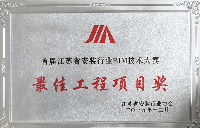 江蘇省安裝行業(yè)BIM技術(shù)大賽最佳工程項(xiàng)目獎(jiǎng)
