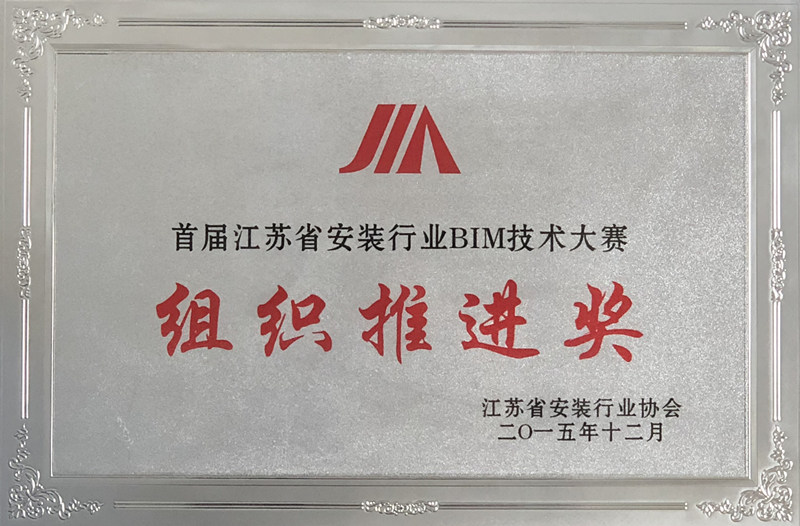 首屆江蘇省安裝行業(yè)BIM大賽組織推進(jìn)獎(jiǎng)